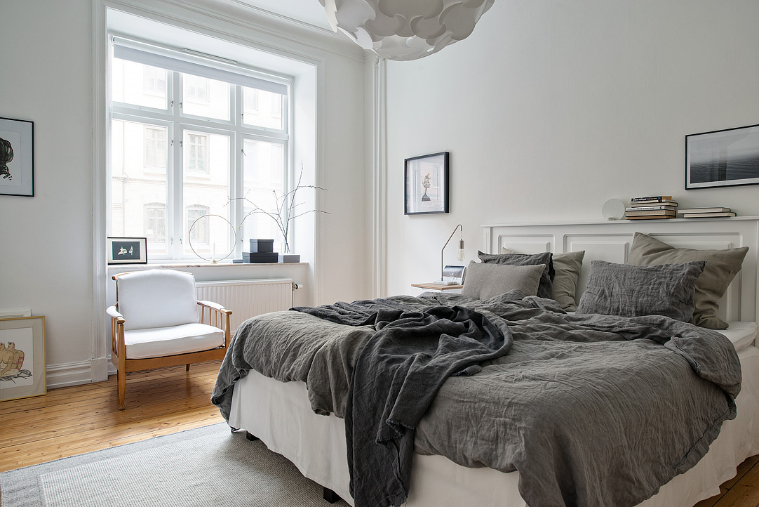 I thought I’d post this bedroom, namely the bed itself.  The easy comfort vibe it gives off was the look I was trying to get in my school room (although at 13 I’m really sure I didn’t manage to achieve quite the sophistication).  The pure linen caught my eye first and then the built-in bed head.  The ledge creates gives depth to the eye and is the perfect spot to replace that empty hot drink that was taken to bed or display items or books.  I can imagine lazy Sunday mornings, propped up reading or chatting and the light streaming in the large window during the summer.