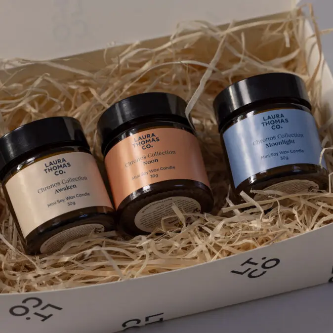 The Chronos Mini Candle Gift Box is a curated journey through the Greek concept of sequential time ‘Chronos’. Featuring all three scents from the Collection, this set allows you to anchor your entire day. From the first light of dawn to the deep stillness of the midnight orbit. Whether as a gift for a loved one or a personal ritual kit, this trio ensures you stay grounded in the present as the cycle flows.